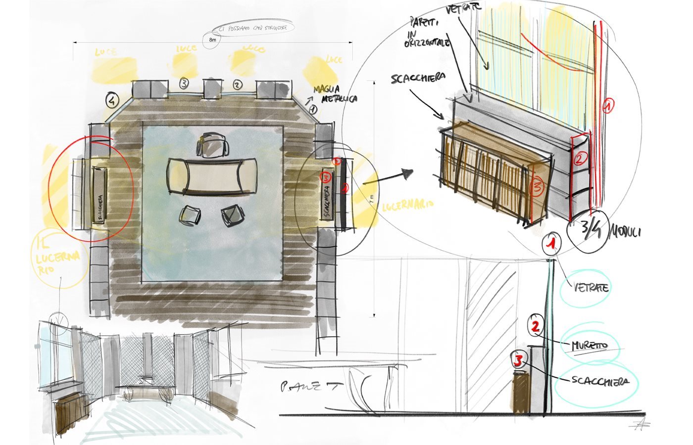 Tavoli, sedie, poltrone e librerie ridisegnano lo spazio e trovano la loro perfetta collocazione insieme a sapienti contrapposizioni di stili diversi ed eterogenei, dando vita a un nuovo gusto dell’arredare.