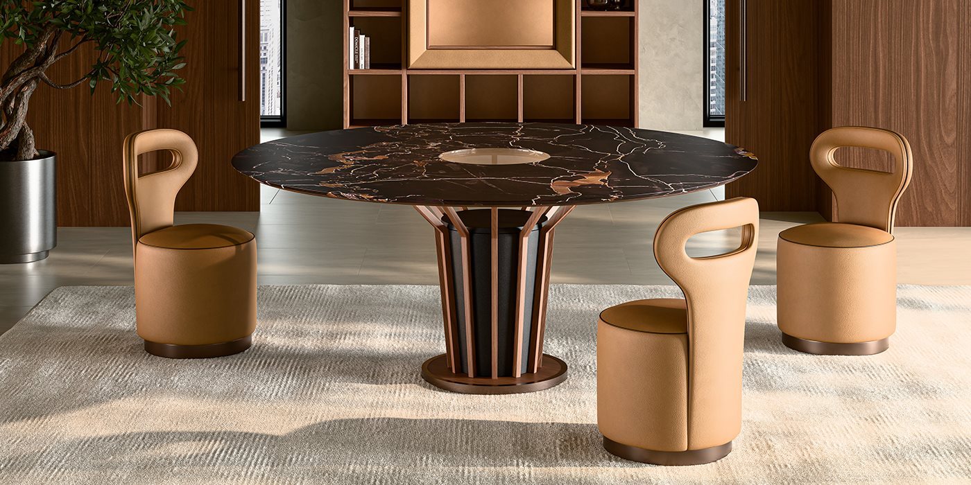 Il passato è riscritto con forme e colori che parlano di cambiamento e il futuro disegnato da innovative proporzioni che lasciano la materia libera di esprime il suo massimo splendore.